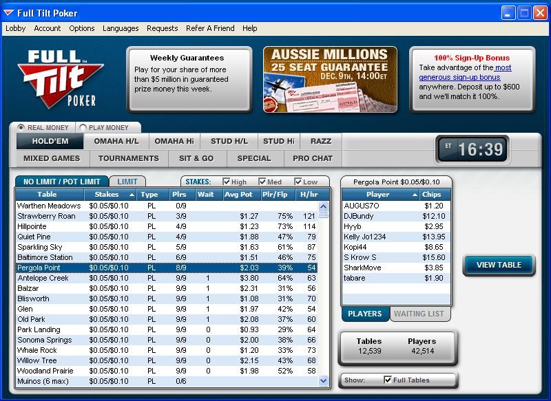 The lobby is clear and easy to see the stakes and tournaments you are playing, it is split into different sections, one for cash games, scheduled tournaments, sit and go's.